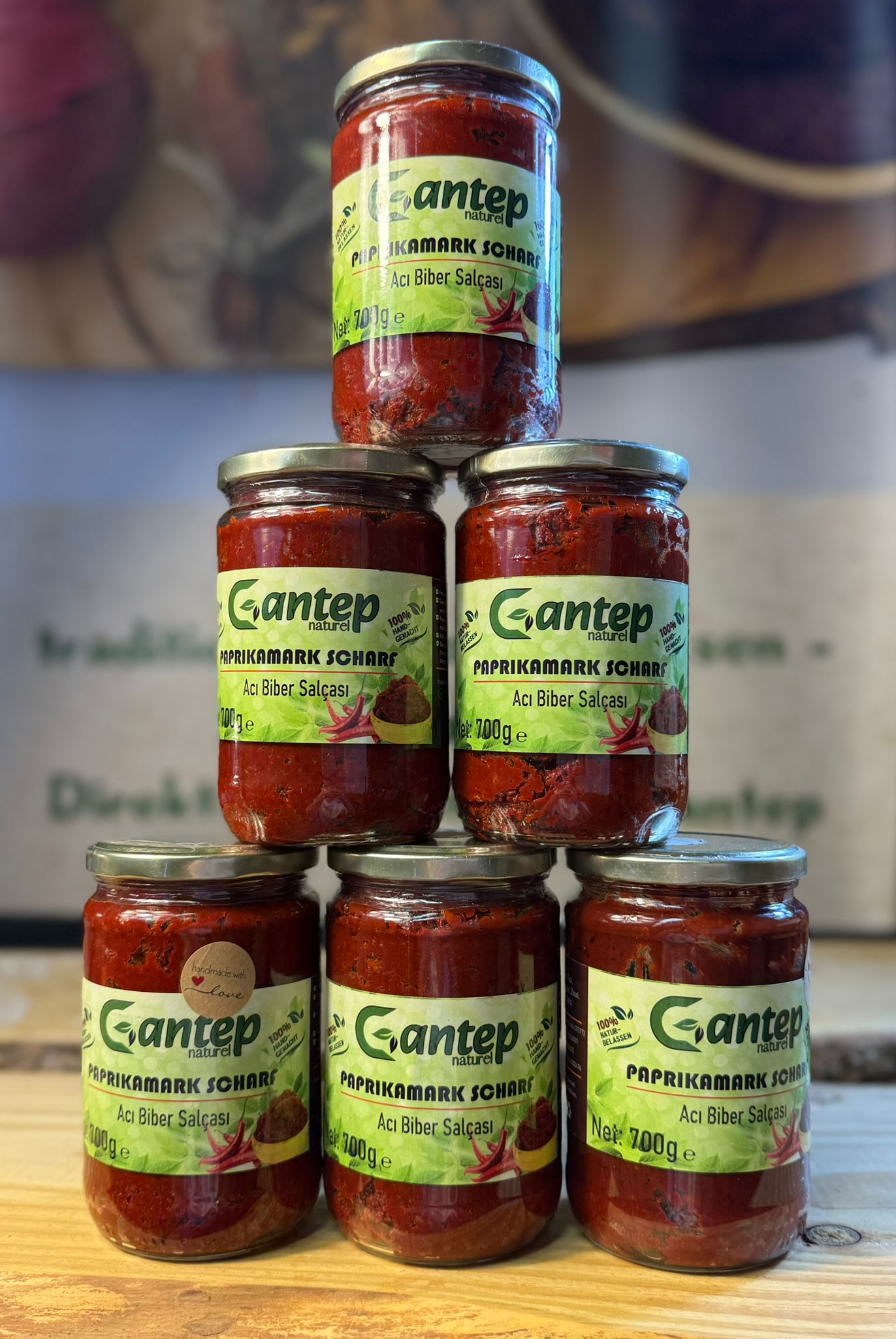 Gantep Naturel Paprikamark Biber Salca scharf 700g sonnengereift